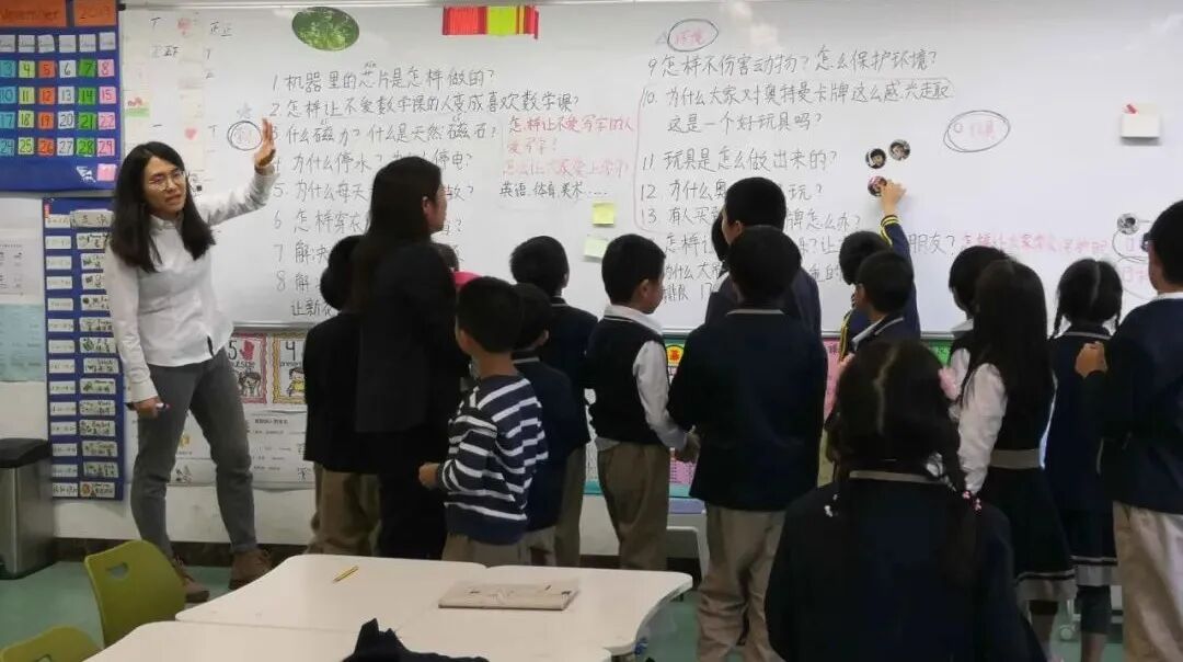 每个孩子都把自己想研究的问题写在花花绿绿的N次贴上,纷纷贴到了前面的白板上——为什么有人总是乱扔垃圾?我怎样才能交到好朋友?……
