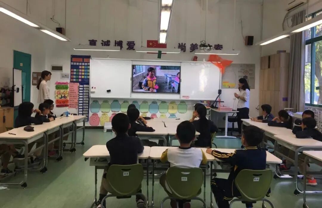 ▲收看视频,听新镇小学的孩子表达拿到他们捐的二手玩具后有什么期待