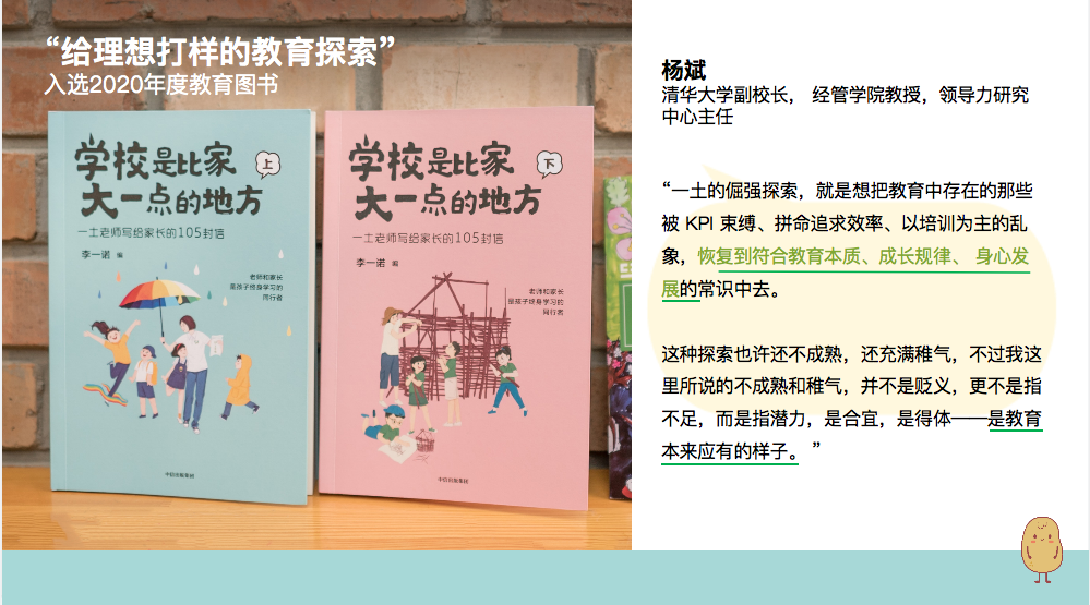 从最初的5位创校老师、31个小土豆,到如今的100多位老师和400多名小土豆,从当年被《中国青年报》称之为“120平方米教育试验田“的枣营校区,到如今稳定的来广营校区,一土走过了一段与众不同的创校之路。
