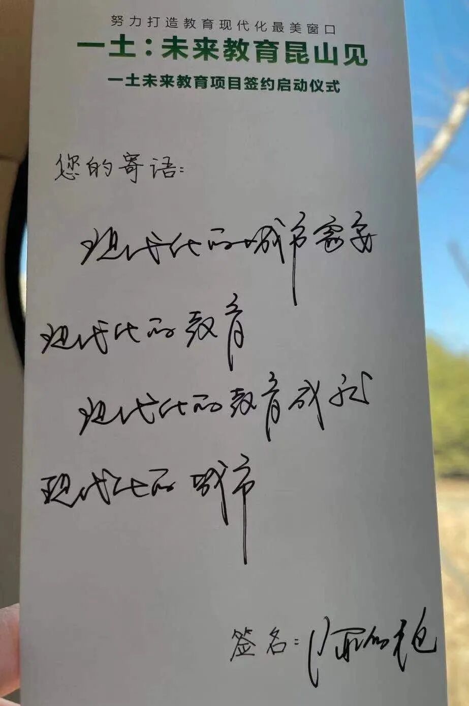 全国政协常委、清华大学万科公共卫生与健康学院首任院长、世界卫生组织名誉总干事陈冯富珍,全国政协常委兼副秘书长、民进中央副主席朱永新,江苏省教育厅副厅长顾月华,清华大学教授、微软公司前执行副总裁沈向洋,清华大学经管学院教授、苏世民书院副院长钱小军等通过现场连线和视频的方式致辞。一土教育集团创始人、董事长申华章,昆山市委书记吴新明,市委副书记、市长陈丽艳,市领导管凤良、曹晔出席签约仪式。