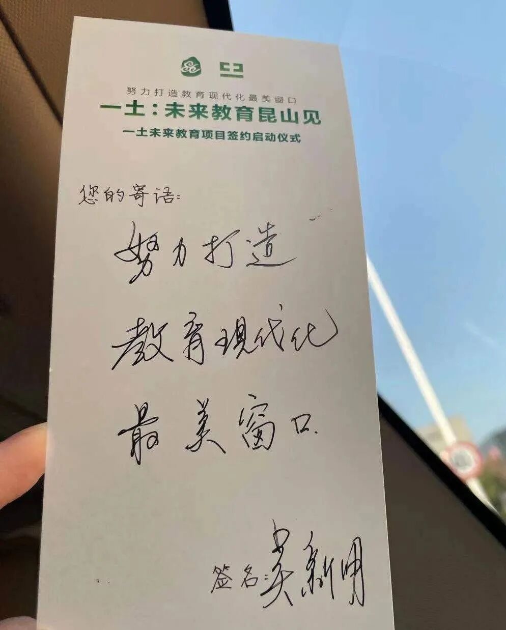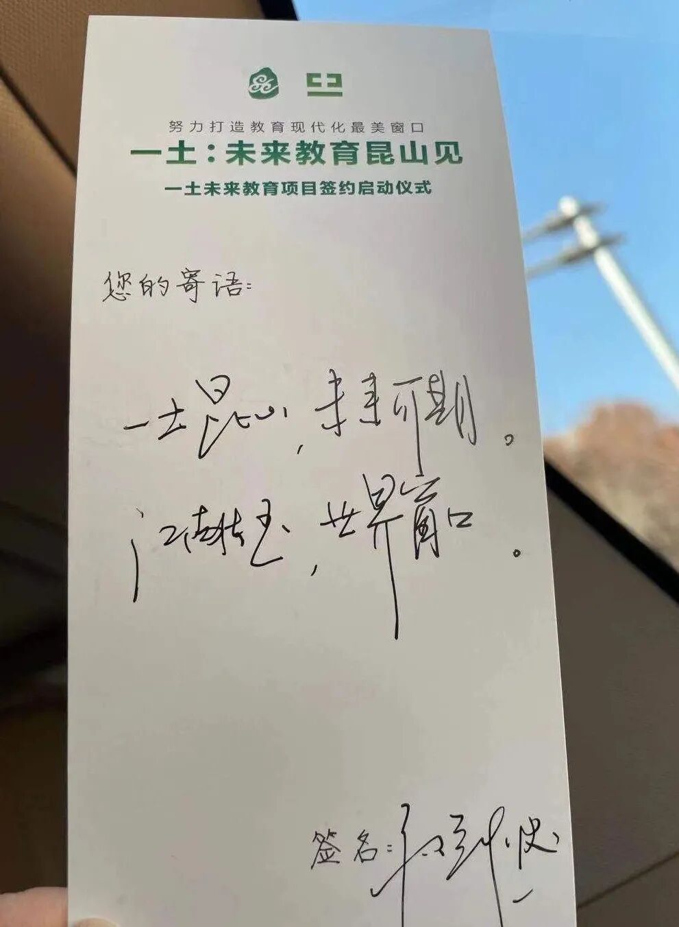 签约仪式后,昆山市委书记吴新明,市委副书记、市长陈丽艳,昆山高新区管委会副主任孙剑波,市领导曹晔写下了对项目的寄语:
