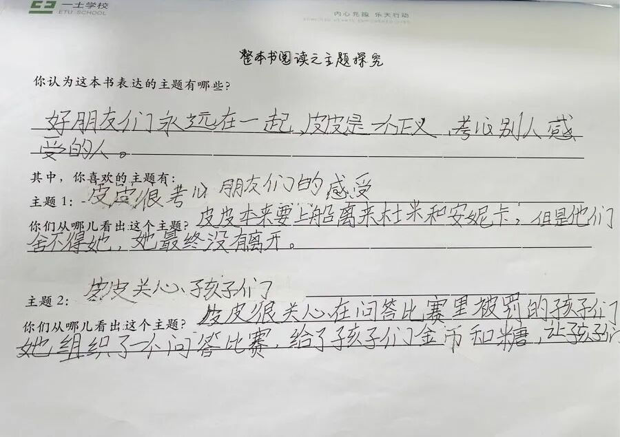 阅读是语文学科的起点和核心,也是其他学科的基础。一个人的终生学习习惯,甚至也和阅读习惯相关。在一土,阅读是语文课上的重中之重,之前一土语文老师祝玉娟曾经给我们分享过一土的阅读五态——老师给孩子们读、整本书阅读、独立阅读、精读和亲子阅读。(点击链接查看→《阅读五态》)今天这篇文章来自四年级语文老师、语文教研组组长何烨,她分享了在课堂上如何引领孩子进行整本书阅读(《长袜子皮皮》和《彼得潘》);如何在阅读中进行思考,培养孩子的逻辑和独立思考能力;如何通过阅读,发掘书与自身、与世界的联系。希望能给家长们一些启发,也能在孩子平时的阅读中,践行这样的讨论。这周我们一起研读了寒假里孩子们读的两本书——《长袜子皮皮》和《彼得潘》。这两本书,第一本更多是女孩视角,而第二本倾向于男孩视角。在上完分享课之后,我们发现,一本书的主角是不愿长大的女孩,另一本则是不愿长大的男孩。