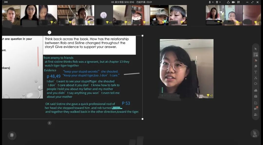 在学术方面,一土的“小”更易让孩子们追求卓越,但是又不会让孩子们因为刻板地追求考高分的任务而丧失主动性。华章在面对媒体采访时曾说:“一土注定不会做成很大规模的学校,一方面是一土教育理念的非功利性,另一方面因为一土的评价体系非常多维度,一土并不是一个单纯强调学生只追求考试成绩的学校,显然这并不符合焦虑时代下家长追求的主流。”其实当每个人回忆一下自己的学生时代,你儿时结识的那些非常优秀的老师,他们的长处在哪里?这个时候很多人都会提及同理心、把枯燥课程讲得生动、成为学生行为模范、让学习变得有趣、帮助学生相信自身潜能等等的能力,却显少有人会提出“哪个老师可以获得高标准化考试的分数”。其实,一个简单的回想,就能让我们深刻地了然,孩子到底需要怎样的“名师”,所谓的“名师”是不是只是帮助孩子追求高分,还是包括学术在内的同等重要的其他。基于一土老师有着以上的能力,在支持孩子学术和感情上的个性化成长方面,一土因其规模小,在效能上发挥出无以伦比的优势。我们本以为这种情感上的链接、学术上对每个孩子学情的精确掌握,很难非常具化的陈列在家长面前,直到刚刚蔓延的北京疫情,所有学校进入网课常态化时代,一土的这些教学效能立马呈现了出来。