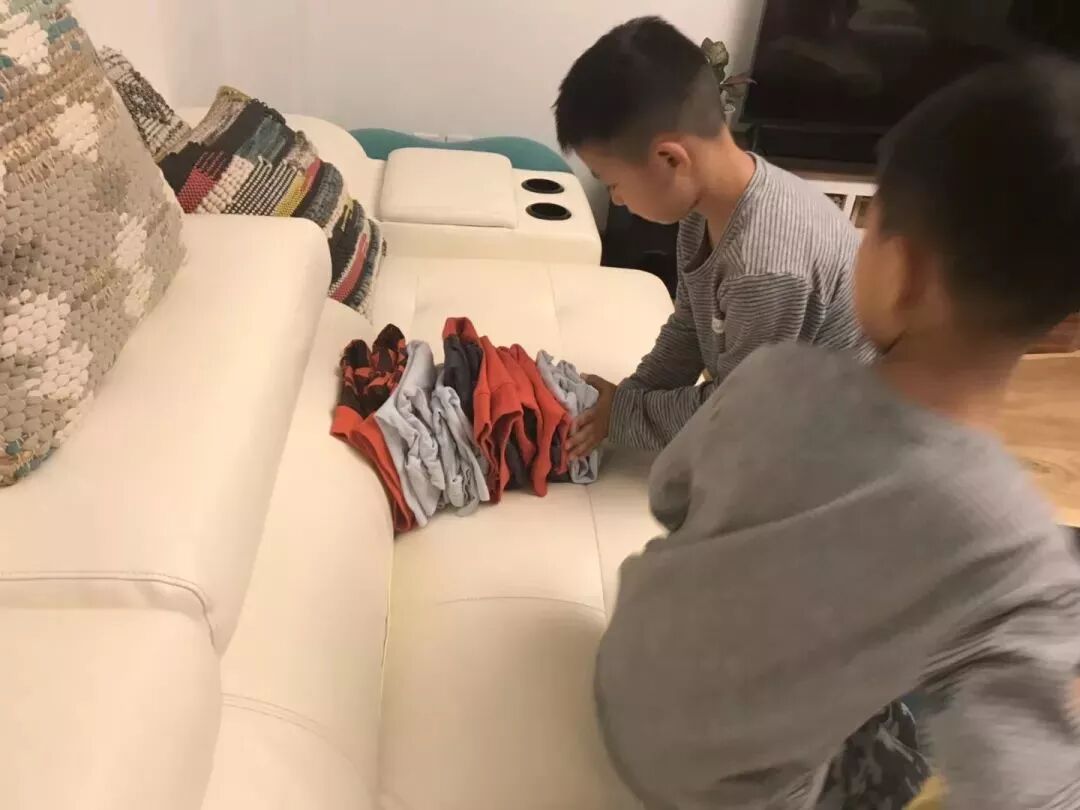 而且家务不是不得不做,而是生活的艺术。我们家阿姨非常能干,那一天我们一起看了叠内裤和衣服的视频和孩子洗碗的视频,后来大家就一起实践,现在小娃们内裤都叠得专业水平。