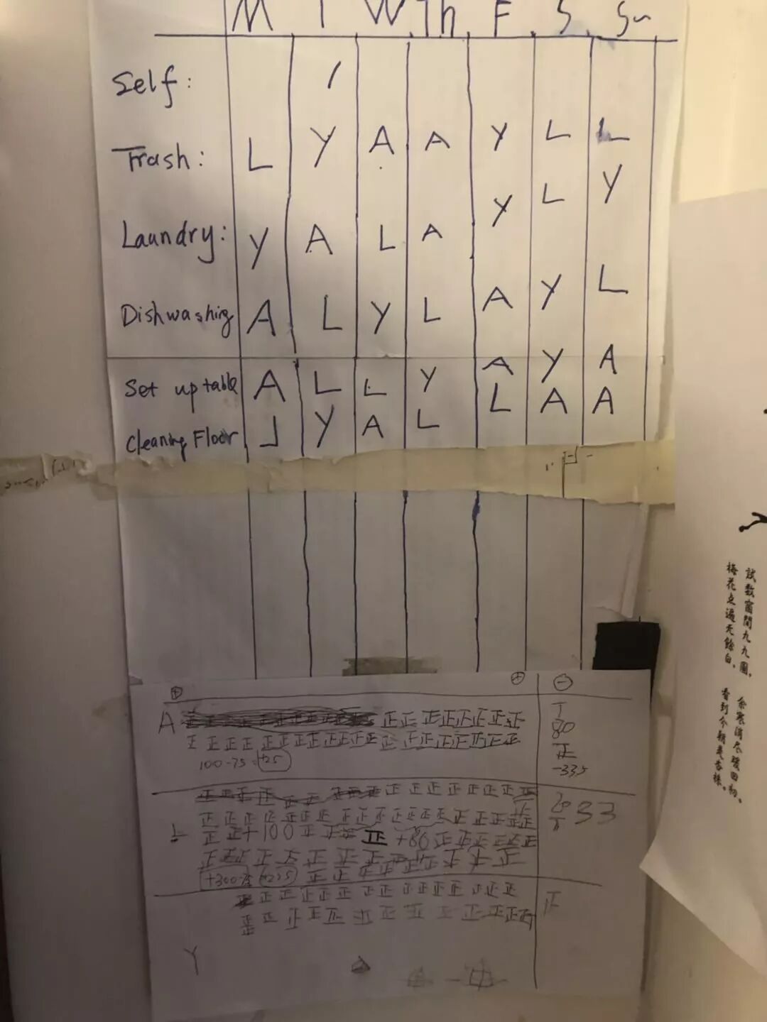 给大家举几个例子,我们家有一个干家务活的排班表。虽然不是每天能做到,但是每个孩子都知道,需要做家务。