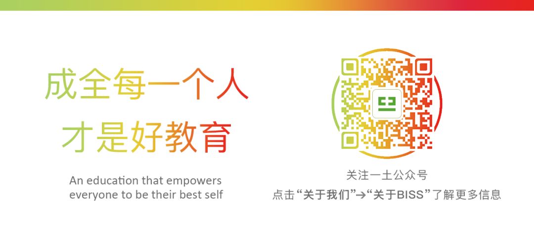 每一个孩子都是天生的学习者,而作为教育者,我们所能做的,就是让教育去赋能每一个孩子,让他们成为最好的自己,同时,又能通过自己的努力,让这个世界变得更好。正是秉承着这样的初心与愿景,BISS与一土殊途同归,也必将走向更美好的明天。