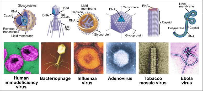 http://www.globochannel.com从中文字面意思来看,病毒的意思是“使人生病的毒素”。实际上,它既不是毒素,也不一定使人生病。我们通常将毒素定义为具有毒性的化学物质,尺度在分子层面,而病毒则是有很多不同种类分子组成的具有复杂结构的微粒。而它使人生病的方式也并不是在体内释放毒素,而是通过自身的大量繁殖。这特征似乎暗示着它是一类生物。然而关于这一点,科学界是一直存在争议的。先暂且不讨论病毒是否属于生物的范畴,我们先来仔细看一看病毒长什么样子。我们要想看到病毒并不容易。不要说肉眼,普通的光学显微镜也无法用于观察病毒。它实在太小了,小到直径只有一根头发丝的十万分之一左右(约几十到几百纳米)。要想看清它,我们必须借助各种电子显微镜。在高倍电子显微镜下,不同的病毒呈现出不同的形态。从下图中可以看到几种不同病毒的形态:有棍状的烟草花叶病毒,蠕虫状的埃博拉病毒,正十二面体的腺病毒,颇似杨梅的流感病毒(冠状病毒与之相似),还有好像月球登陆仓一般的噬菌体。虽然不同病毒形态各异,但它们都有相似的结构:蛋白质(protein)的外壳,包裹着核酸(nucleic acid)(DNA或RNA),有些具有脂质的包膜。