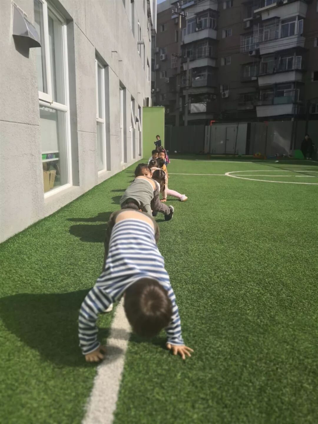 “爬,可以锻炼小孩子的四肢力量、腰腹力量以及身体协调性。”王老师抽空站在我旁边,再次向我解释这些运动里面的道道,“我们发现有些小孩上肢力量不足,但是我们不能等到他们需要投球的时候,再开始练,那样太被动。所以,我们根据5、6岁儿童的身体和心理特点,提前通过这种上肢、下肢等全身性的练习,来整体提升他们的四肢力量。”