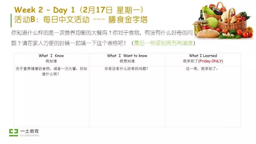 在幼儿园,我们通常会和孩子们一起讨论这些线索(KWL):对于这一问题,他们知道什么,想知道什么,以及最终学到了什么。在线上,我们没有条件进行如此充分的讨论,但我们希望能够给到家长一个框架。