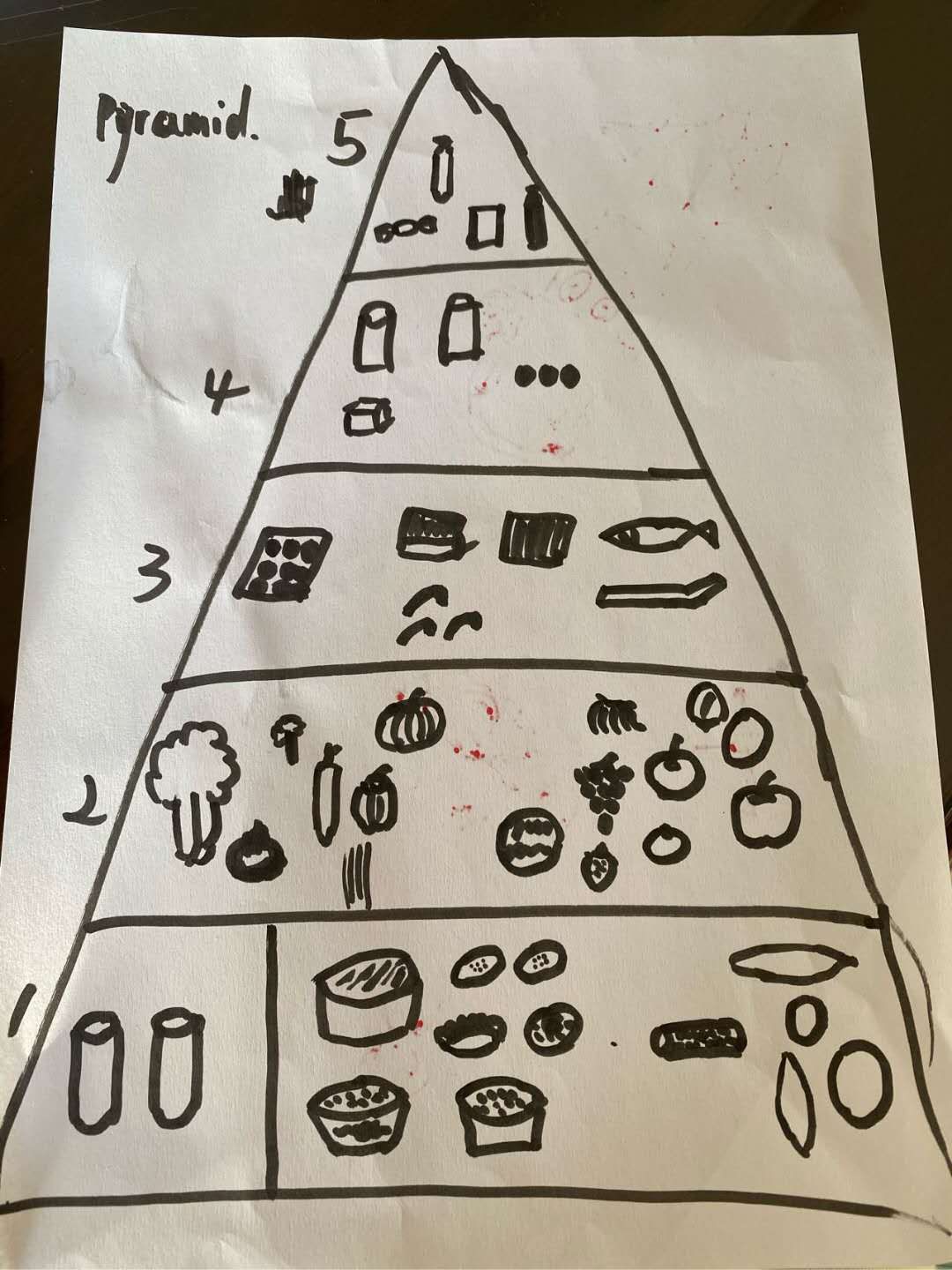 ▲ 第二周项目里,不同孩子做的膳食金字塔