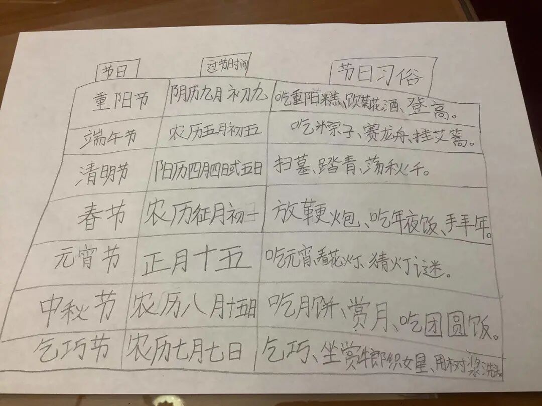 - 先通过课本上的信息收集表格,让孩子们自己收集不了解的五个节日,他们在尝试收集信息、整理信息、呈现信息的过程中,也在积淀相关知识、梳理设计要素。