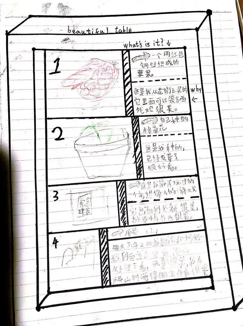 发现自己和自己身边的:3 件“美“的物品;1 件“美”的事情:参考老师范例,设计自己独特的版面,用文字和图画创造自己的“美美事件簿”,并与家人分享你的观察与奇思妙想。