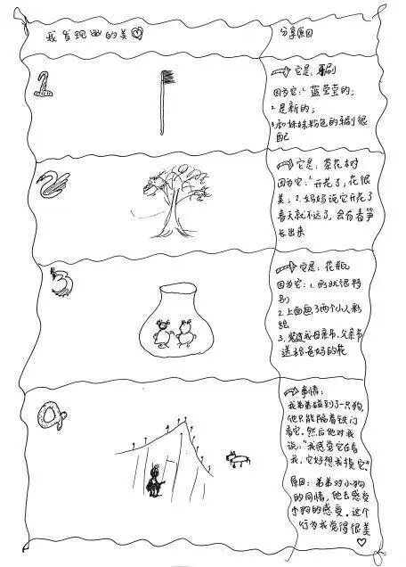 老师绘制出属于自己的“美美事件簿”展示给孩子,通过搭建脚手架,引导儿童洞见日常生活中的细节并记录美好画面,以故事的分享促进思考与交流,饱含想象力与生活逻辑的美学教育便自然生成。广州的初春,总是能够幸运地嗅到阳光的味道。此时的光与影,便成为艺术课程设计中最常用的材料,能够去引导孩子们用自己的创造力和丰富的想象力实现对光影美好的描绘。