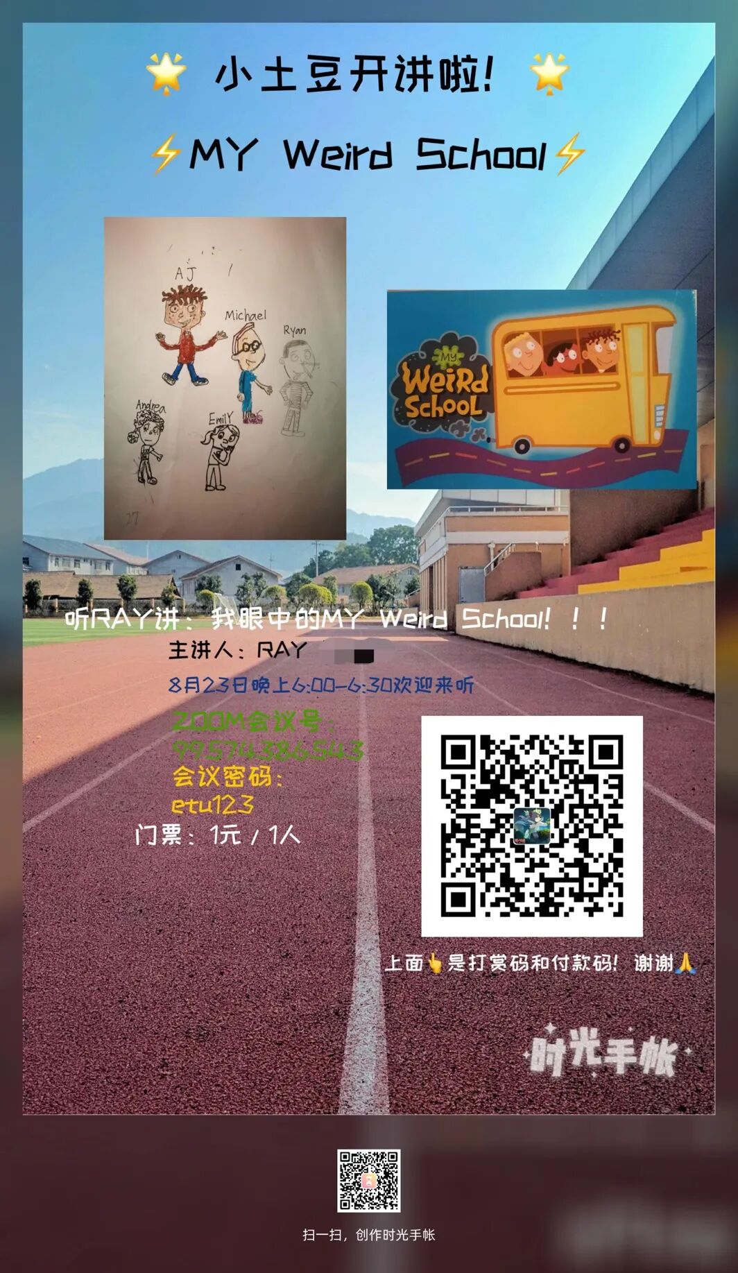 又到12月,我四年级的儿子跃跃也即将走过“九岁之壁”,踏入他第一个双位数开头的人生。看上去,跃跃还是那个非常简单、纯净的小孩儿,没有上过什么奥数班、英文课外班,没参加过什么杯赛,也没得过什么特别的奖项,如果简单用一个可比较、可衡量的标化考试的维度去看待他和许多别的孩子,我们可以说是一个没有什么特别竞争优势的、普通的孩子;但,当我抽离那些教育中可见的部分,去看到那些“不可见”的部分,他就是我所期待的那个样子——内心充盈、善良、真实、健康、眼里有光、喜欢用绘画表达自己和他眼中的世界,善于与人交往,也善于与自己和解。今天这篇文章,我想用几个孩子的故事和日常,来描述这些年在一土的教育体验留在他身上的印记。换句话说,这些其实是我作为妈妈,最希望教育带给孩子的财富与价值。小时候的跃跃,是典型的腼腆内向型的孩子,因为他本身就瘦瘦小小的,所以在某种程度上,也让他对自己缺乏自信。记得第一年在一土,老师在晨犀里(我们的家校沟通平台)总会记录孩子在课堂中非常有意思的表达和对话,但我作为老母亲,很难在其中找到跃跃的发言,以及他在课堂中的表现。如何更主动和积极地表达自己,并客观冷静地去接纳“冷反馈”(一土行话:相对于热反馈而言,具体友好有帮助的反馈),接纳自己的不完美,是过去几年老师常常给跃跃设定的目标。如今4年多下来,我看到他最大的成长,就是变得更加自信和阳光。疫情期间,在Zoom平台的线上课里,他是那个非常喜欢发言的孩子,而老师也会抓住他的每一个闪光点和瞬间,带着小伙伴们一起对跃跃的发言给足热反馈,让他更加敢于站出来更放松的表达自我。在Zoom线上体育课,他被老师多次定位成“焦点”,带着全班一起做运动,至今,自己录制的一套健身操成了爸爸每天在家锻炼的视频教材;而在英文课上,老师让孩子们用一段视频来去复述学过的故事,跃跃在镜头前自信满满的样子、抑扬顿挫的语音语调,和声情并茂的讲述,说实话给老母亲带来了小小的惊喜。今年暑假期间,跃跃答应了老师的邀请,在“小土豆”开讲里,分享他眼中的《Weird School》,从准备分享内容,到和我一起准备PPT,到制作讲座推广视频及海报,到后来30分钟的分享,我看到了我期待的那个阳光小少年。面对听众和老师的提问,也对答如流,毫无做作的真实溢出屏幕。最终,跃跃因为这个分享收获了800元的打赏,然后干脆利落地将一半的收入捐给了“小土豆”的公益基金。