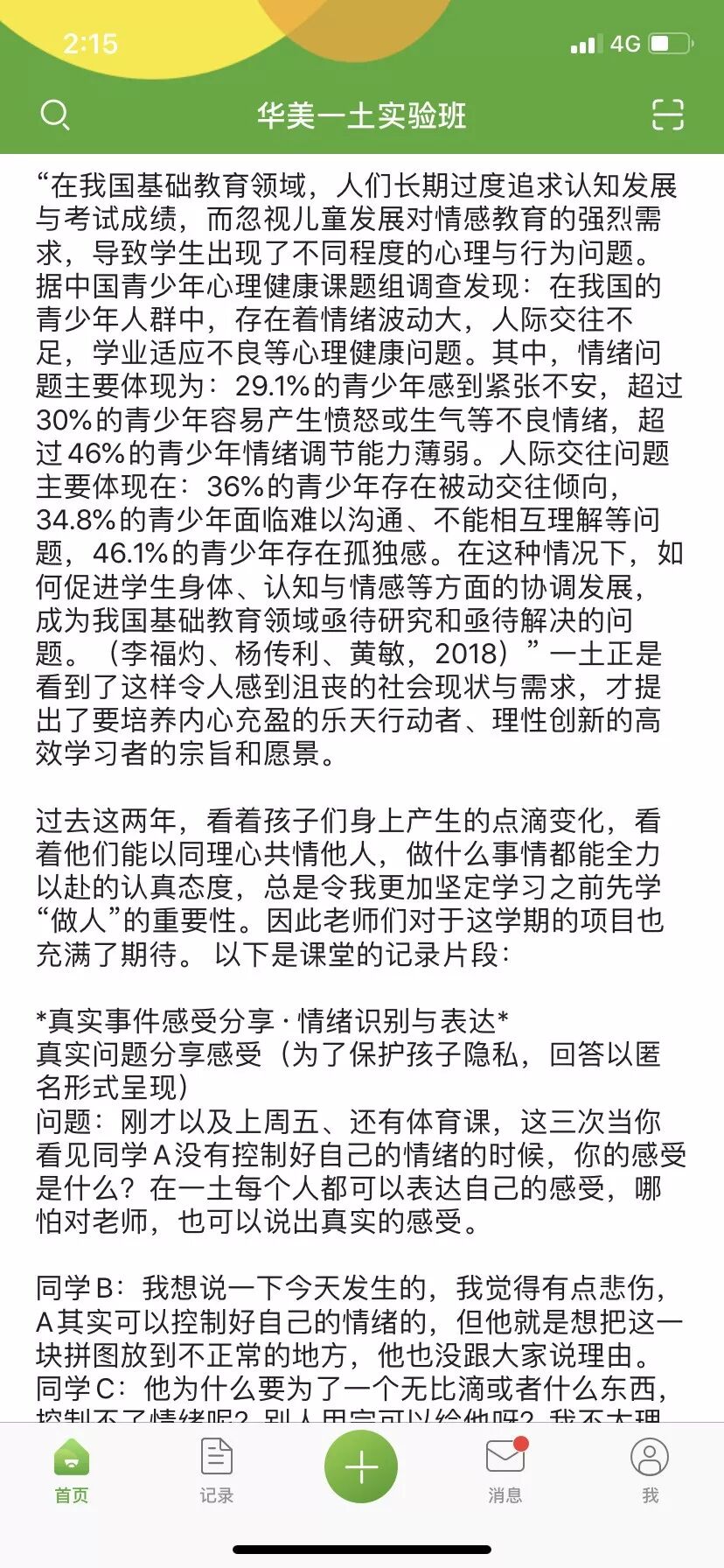我们暂且不阐述最上层的教育生态愿景,仅就每个孩子而言,一土的价值观在日常教学里的集中体现应该是SEL(社会情感Social Emotional Learning)课程。从家长们上述的感受与评价也可以清晰地看到,无论是家长们来之前对一土的期待还是入学后对一土的感受,在尊重儿童天性、关注孩子的自我认知与情绪管理这些方面,一土的教师投入了更多的精力,进行了更多的课程设计。