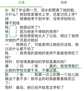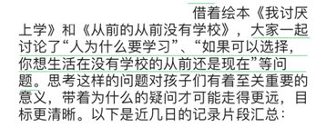 那么为了保证这次的问卷数据与样本信息的一致性,我们还是以转学生最集中的三年级木棉班的教学为实例来看。以上所提到的语文教学价值观与教学思路是如何在一堂堂课、一次次师生互动中落地的。此处随机抽取了木棉班的晨犀记录中的语文课堂实录片断。