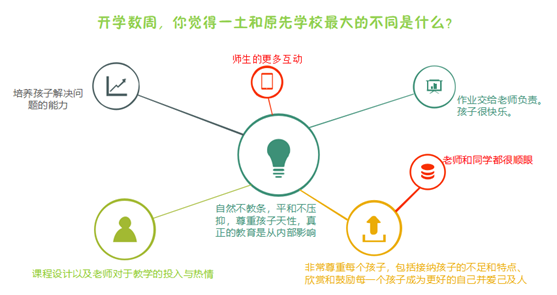 近期,我们也做了一次问卷调查,聚焦于家长对于一土与转学前学校的对比。我们直接原封不动地摘录了几位受访者的原话。从中可以看出,当前的基础教育,很多教育常识有待大家进一步回归。