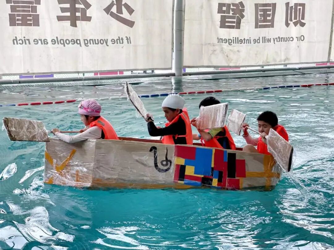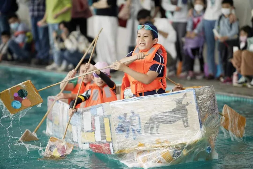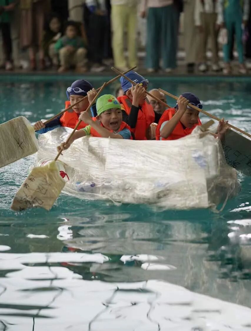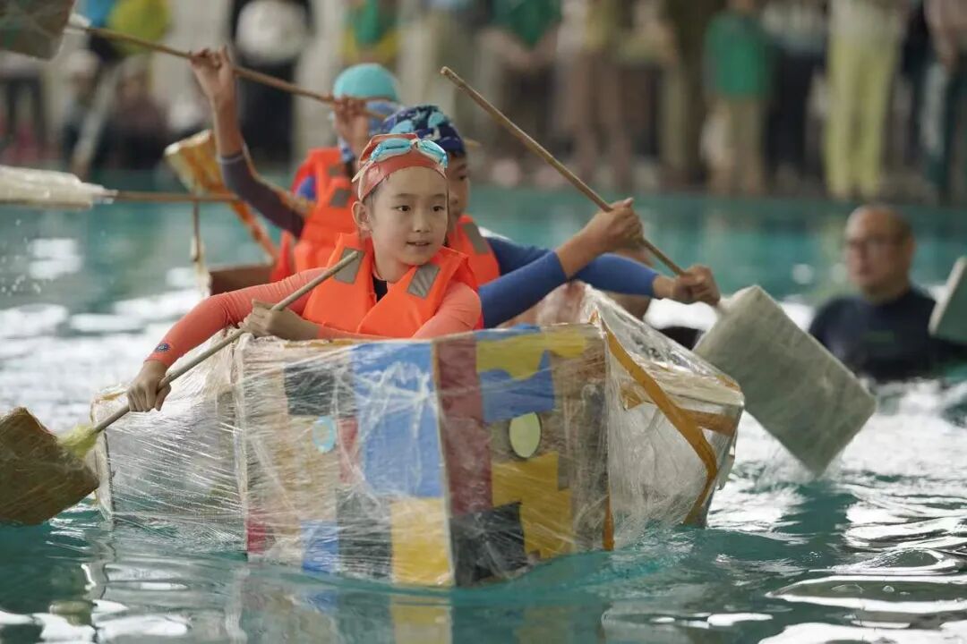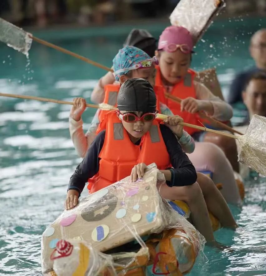 子游和几位Partners的星空组小船,两次下水受挫,摇摇晃晃,最后在孩子们的坚持不懈,以及水上家长的爱心护航下到达,挑战成功!虽然速度最慢,试水两次翻船,但我没看到孩子脸上丝毫的沮丧。