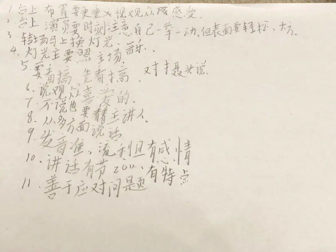 参观回校后,小土豆们对电视新闻节目制作有了更直观的感受,就通过填写志愿的方式争取自己想饰演的角色,诸如导演、新闻主播、对话采访记者、事件亲历者、法律专家等等。填报的原则有两个,一个是自己能够胜任的,一个是自己想挑战一下的。比起谁演得好谁上台,更可贵的是孩子们能够获得更多的锻炼机会,因此,老师们设置了A、B两场演出,让每个孩子在两场分别挑战不同的角色。在正式开演前,小土豆们面向一土的老师和同学一共试演了四次:第一次的手足无措,第二次的被认可,第三次的滑铁卢,第四次的重拾信心。整整五天的时间,大家拗着一股劲儿,放弃中午休息的时间,把涉足的所有地方都变成了舞台,一遍遍试,一遍遍改。终于……