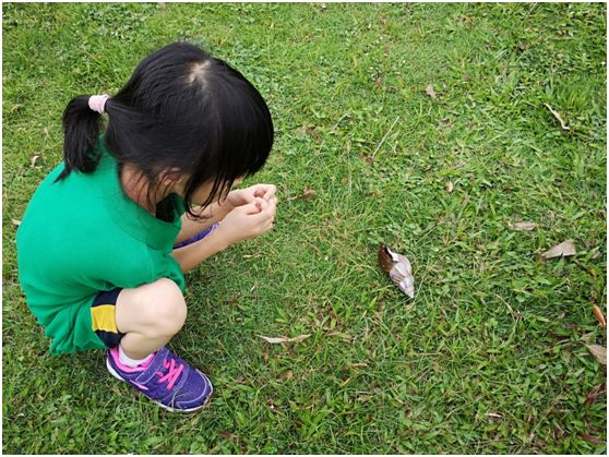 这次的field trip,从上山下山,木棉班的小土豆们明显对自然有了更加细致的观察:从伫立在石头上的蓝色蜻蜓,到成群结队搬运甲壳虫的小蚂蚁,再到不知名的花纹小虫子、流连于花丛的蜜蜂、翩翩起舞的枯叶蝶……孩子们那么细致地捕捉着大自然的动态。