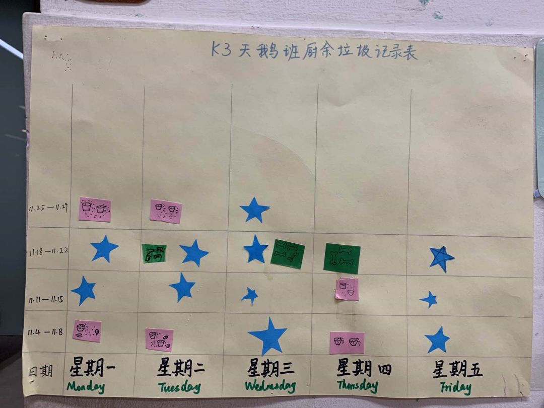 △天鹅班的厨余垃圾记录表(星星代表“光盘”)
