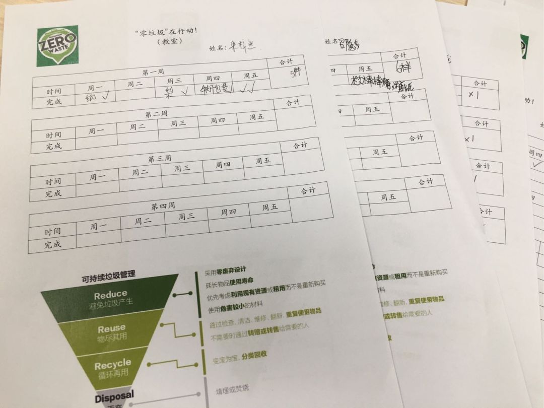 △孩子们记录自己每天产生的垃圾