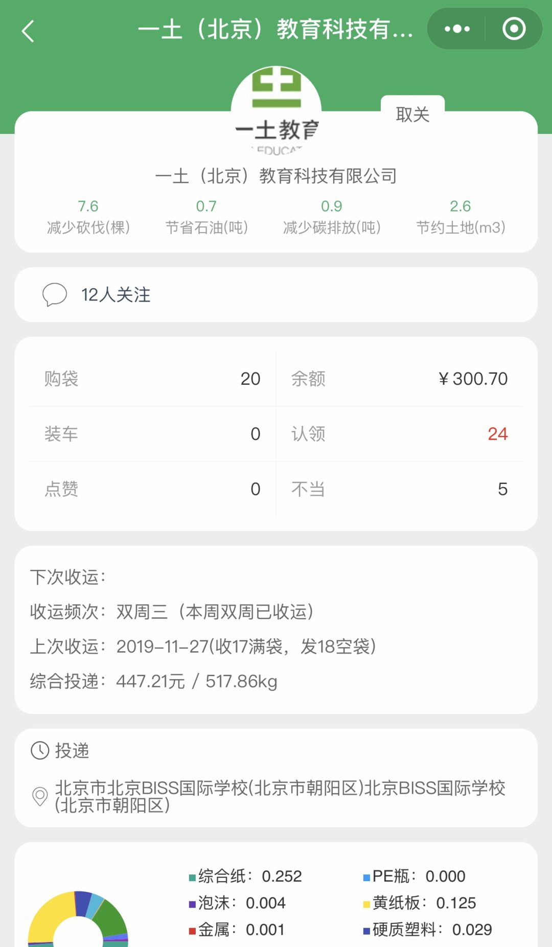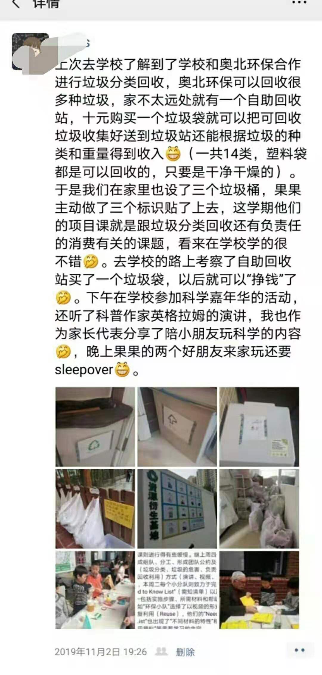▽一土家长、员工受到“小土豆”感染,也参与到回收分类行动中