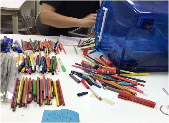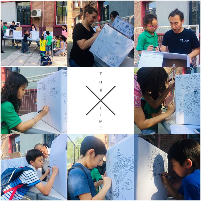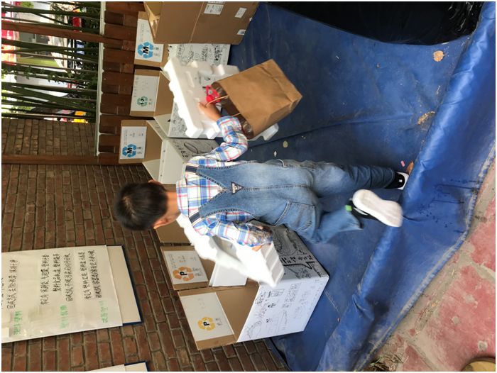 学校缺乏垃圾分类箱,怎么办!为了让孩子们养成正确投递可回收物的习惯,环保小组准备了纸质的投递箱,并引导师生们在上面自由创作。“通常,孩子们对垃圾是抵触的,认为它又脏又臭。我们希望改变孩子们对垃圾的这一认知,让创作‘垃圾桶’和生活相结合,和美育相结合。”环保组的孙莹老师说。