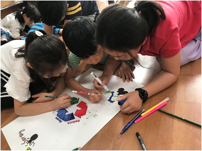 △孩子们在项目课上做倡导海报