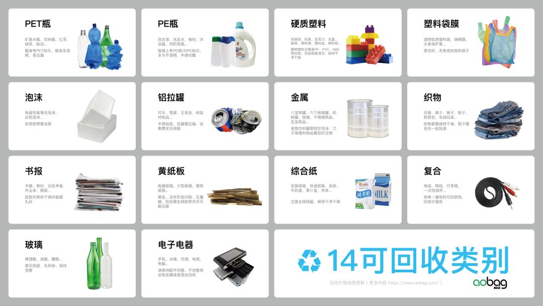 ▽楼道里的奥北14类可回收物分拣说明
