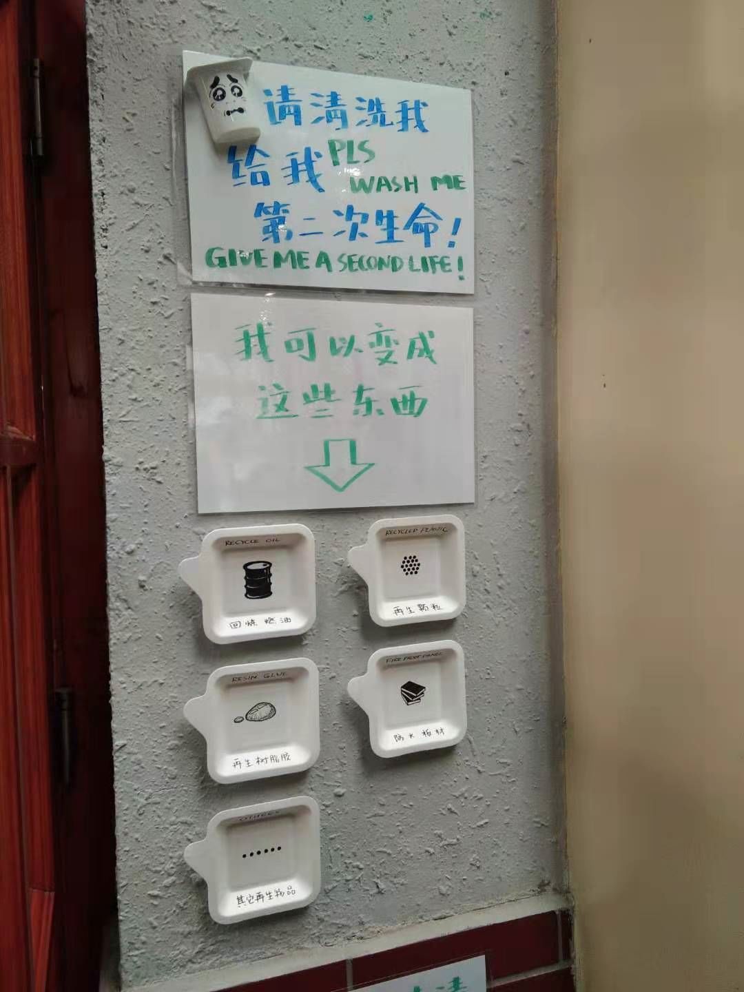 ◁餐厅门口的环保倡导