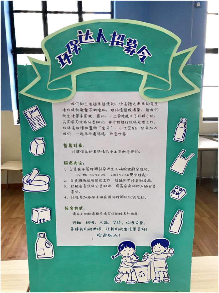 △招募“环保小达人”的海报。