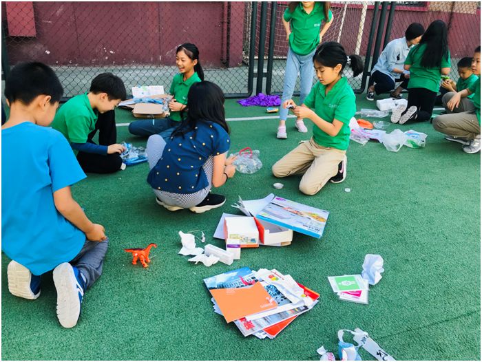 △孩子们在奥北老师和环保小组的指导下,