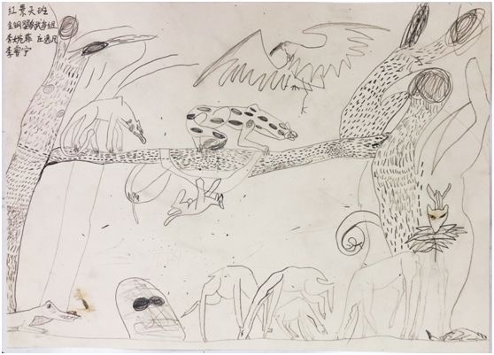 我们不是让孩子们一开始就学习结果,而是让他们在过程中打开感官、启动思考、发现事物之间的关联、从已知中发现未知。选择什么样的栖息地?那里有什么样的生物?这种生物为什么有这样的外形和功能特征?它所在的环境(温度、湿度、光线等)是怎样的?它以什么为食物?又有什么样的天敌?……孩子们告诉我们有的生物变异了,哪一部分功能产生了变异?又是什么样的因素诱导了这样的变异?我们能够做哪些努力去帮这些变异的生物恢复他们赖以生存的家园?……形而上谓之“道”,我们引导孩子们追根溯源,让他们自己去设计脉络和路径,寻找自然的源头;形而下谓之“器”,我们帮助孩子们通过视觉的设计来呈现他们的思考和想法,给生物创设一个栖息地的模型。