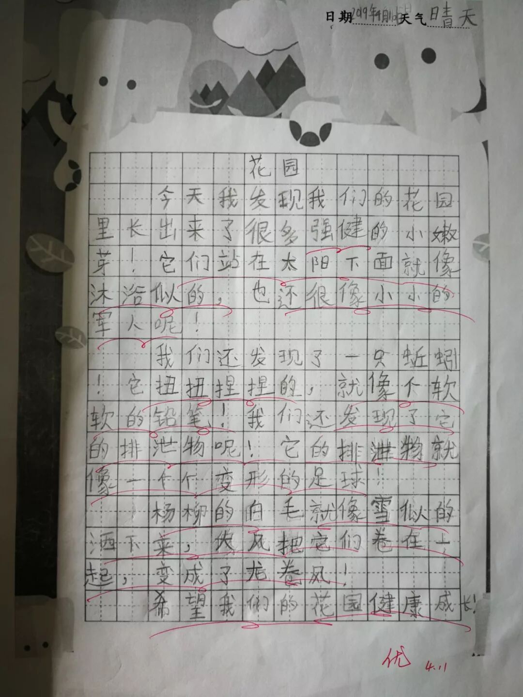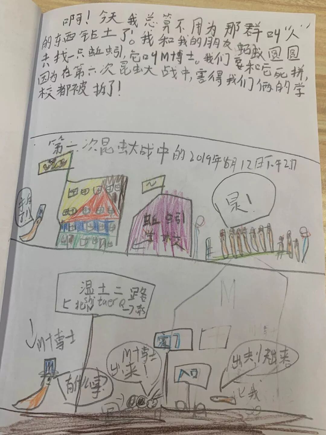 “让我开心的是上美术课和语文课写蚯蚓的日记,因为我觉得很有意思。”