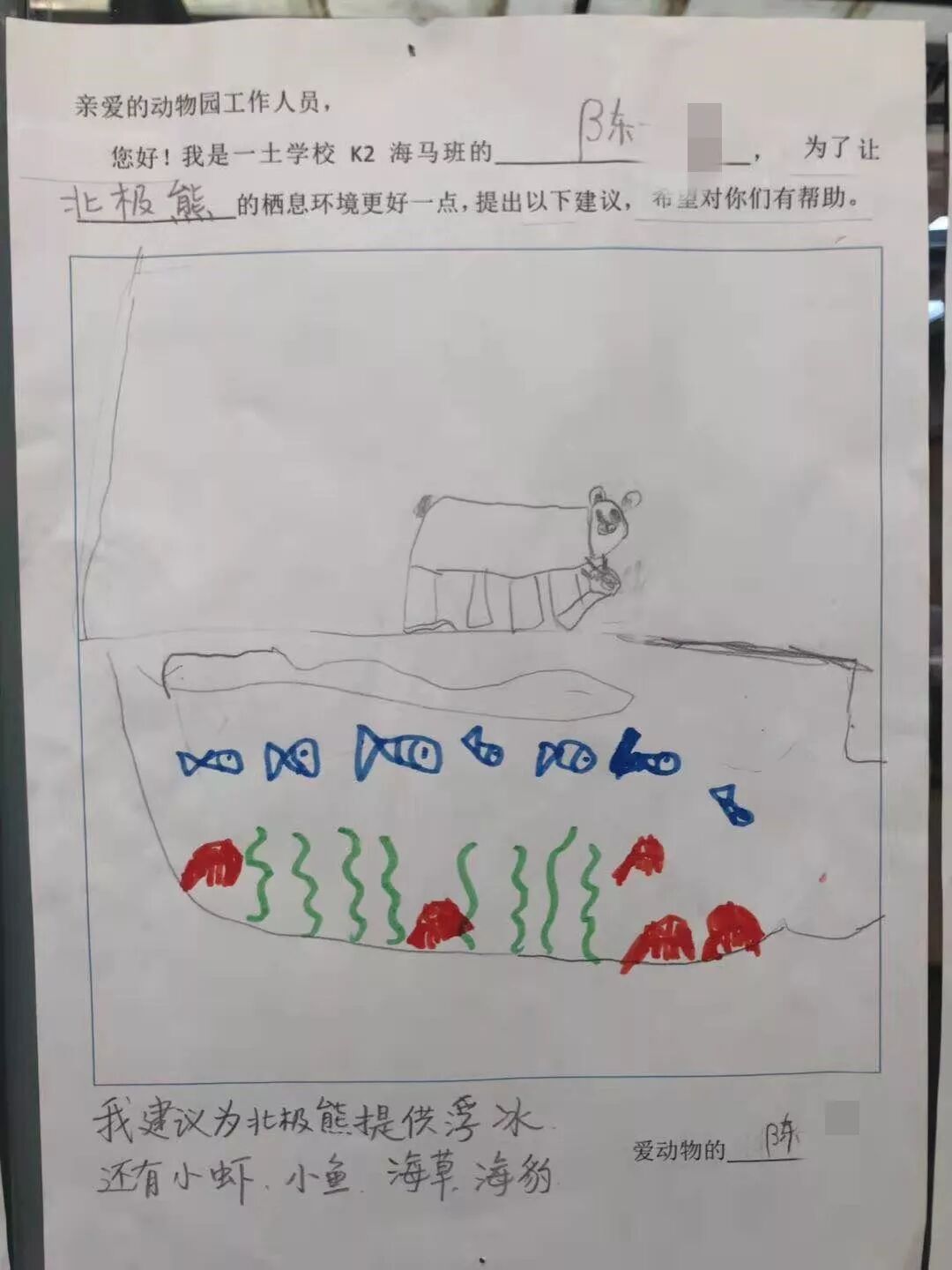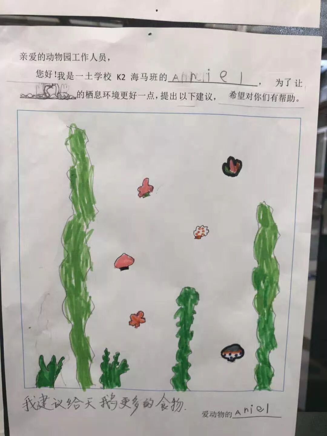 值得一提的是,K班小朋友在参观完动物园之后,还给动物园写了信,提出如何改善动物们的栖息地才能对动物更友好的建议。