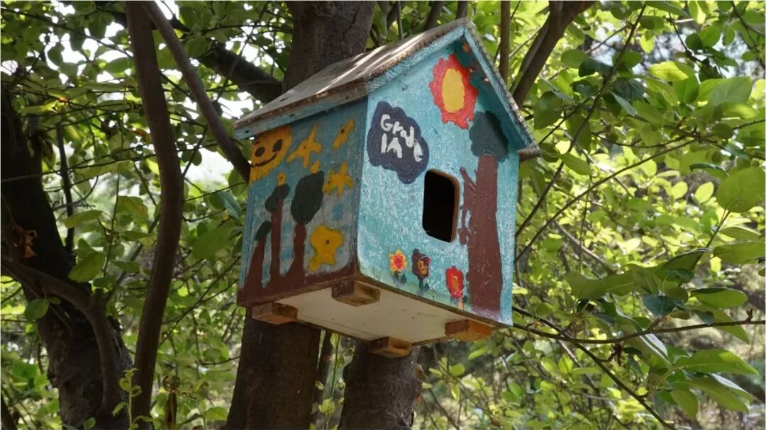 英语课除了带领学生们写作栖息地英文日志、制作栖息地英文游戏之外,孩子们也亲自动手设计制作了鸟窝和喂鸟器。