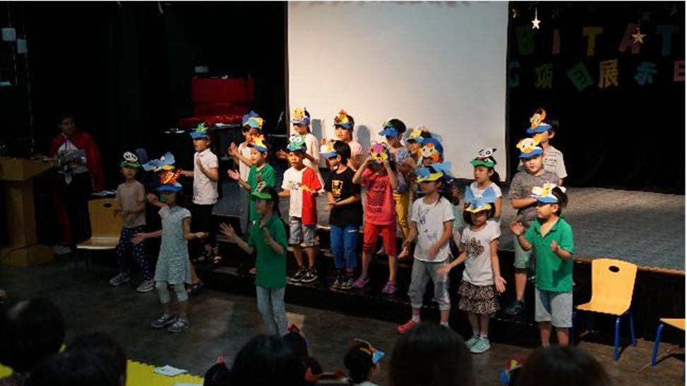 ▲音乐课展示,孩子们在老师的带领下创作和演唱歌曲《Habitat》,感动了在场所有的家长
