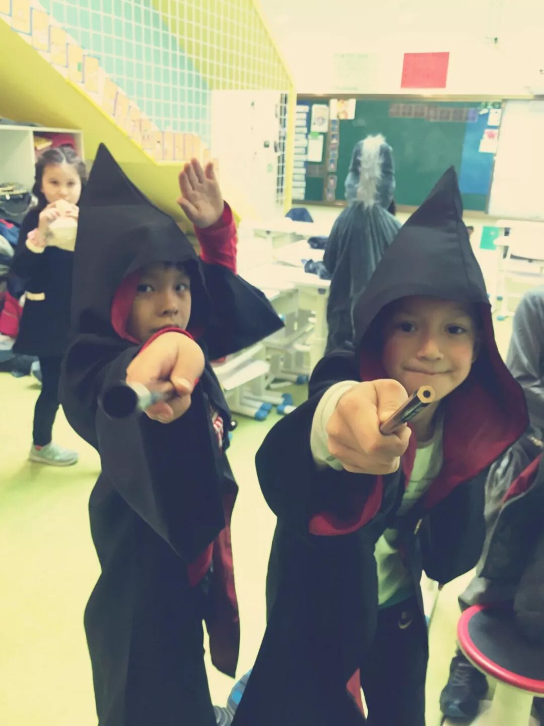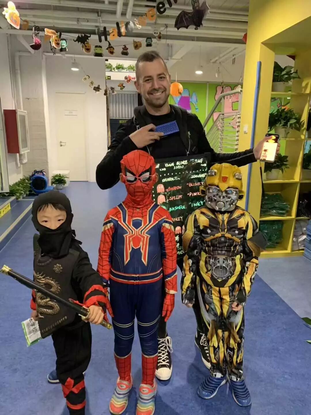 其实,这只是一个小小的热身啦,怪兽日的主题活动是每个班选择一个代表自己班级的怪兽。骷髅、海盗、蜘蛛侠、亚洲鬼……孩子们的想法千奇百怪。确定怪兽之后,班级老师和孩子们一起商定要穿的主题服装,于是,那天的校园随处可见这样的“奇装异服”↓↓↓
