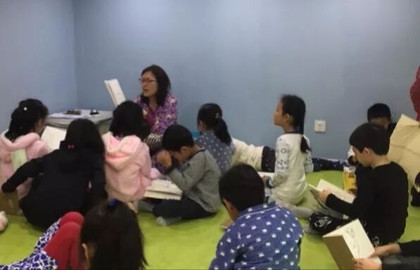 ▲穿着睡衣的老师和孩子们一起在阁楼里读着《阁楼上的光》