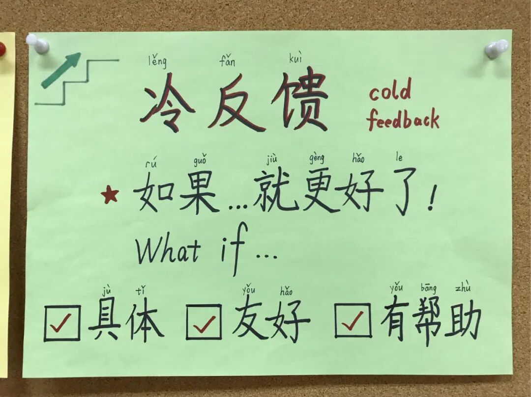 但是这不意味着老师对学生的不规范行为视而不见,需要给学生指出问题、提出建议时,老师也会采用“如果……就更好了”的“冷反馈”的话术来提醒孩子。