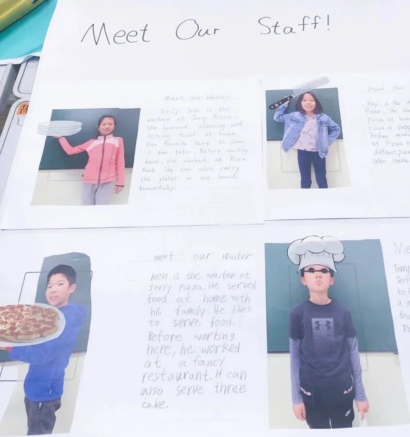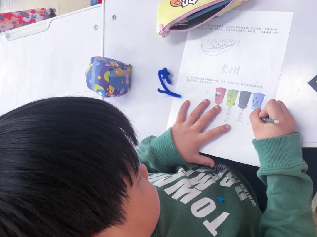 英语课上,一土采用的是分班教学,这样的做法是最大化个性教学,让有着相近语言背景的孩子们集中所需,互取所长。家榕这次英语课的主题是SDG项目“负责任的生产与消费”,孩子们设计了环境友好餐厅,这节课是各个小组给老师展示自己餐厅的logo设计还有结合logo设计的理念。