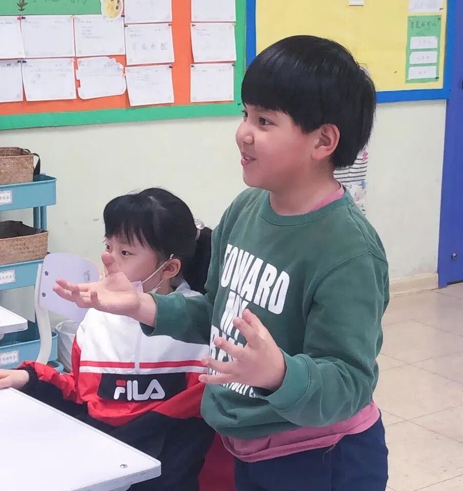 “Class,Class!”王祎老师对着讨论热烈的孩子们喊了一句,激动欢脱的孩子们像施了魔法一样,马上转过头看着老师瞬间安静下来,就连表达欲最强的孩子也瞬间弱化了自己的音量,随着眼睛注视老师的那一刹那,瞬间安静回神。整个过程用时不到5秒。