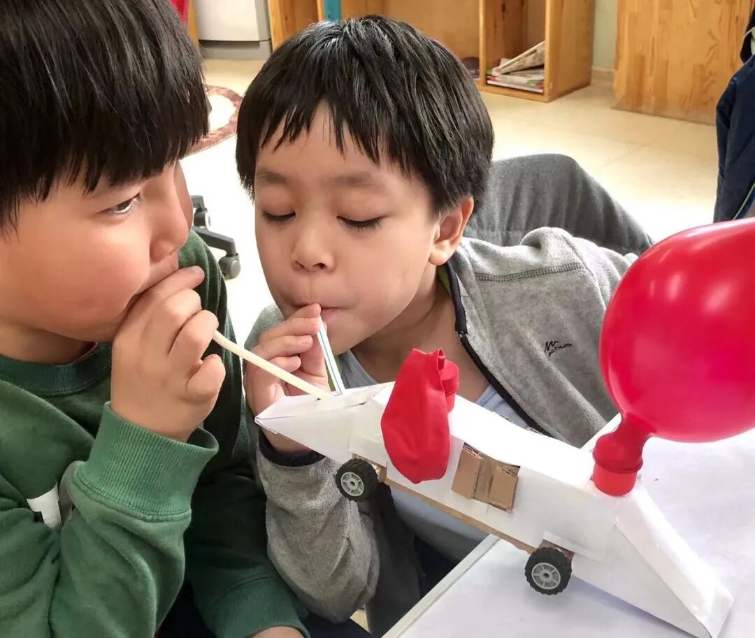 家榕小组展示的作品是“eco-friendly Train”(环境友好小火车),这个环境友好的火车联动了两个很有喜感的红气球,助跑的时候,比较考验家榕的肺活量,每到有小土豆来到展位前,家榕都会气沉丹田,大吹一口气,火车缓缓前行,得到选票的家榕喜上眉梢。