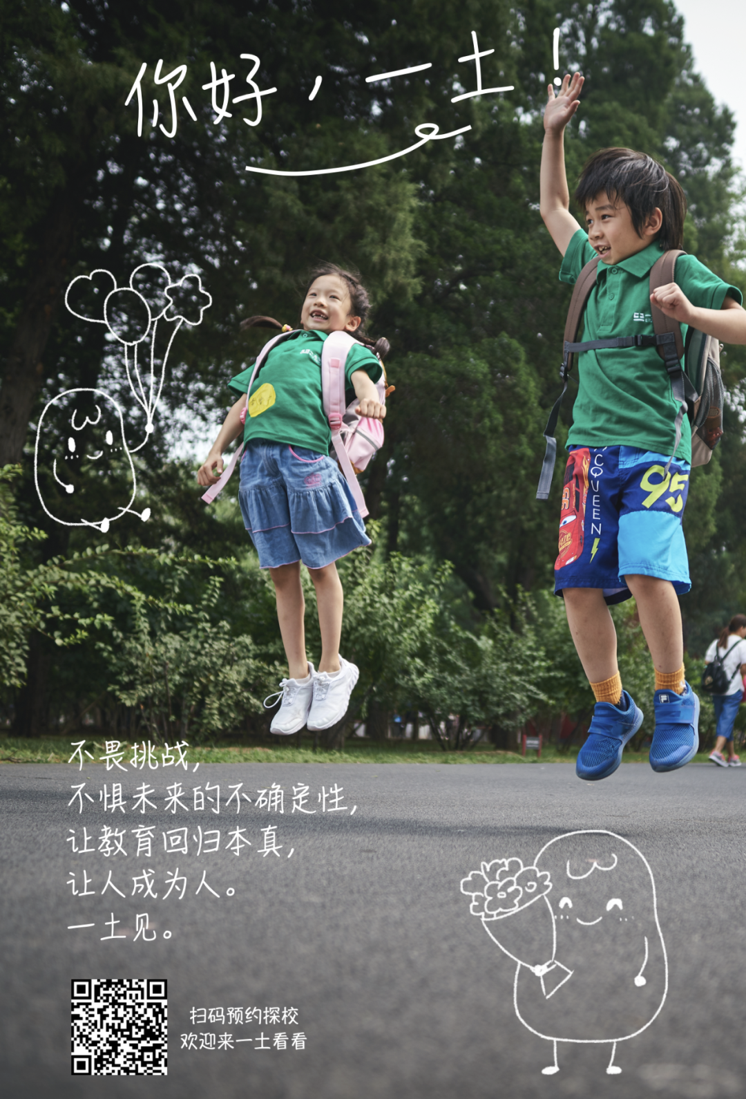 我们将不定期举行多场小型探校活动,想要了解更多北京一土小学的朋友可扫码海报中的二维码进行探校预约,真诚欢迎您的到来。