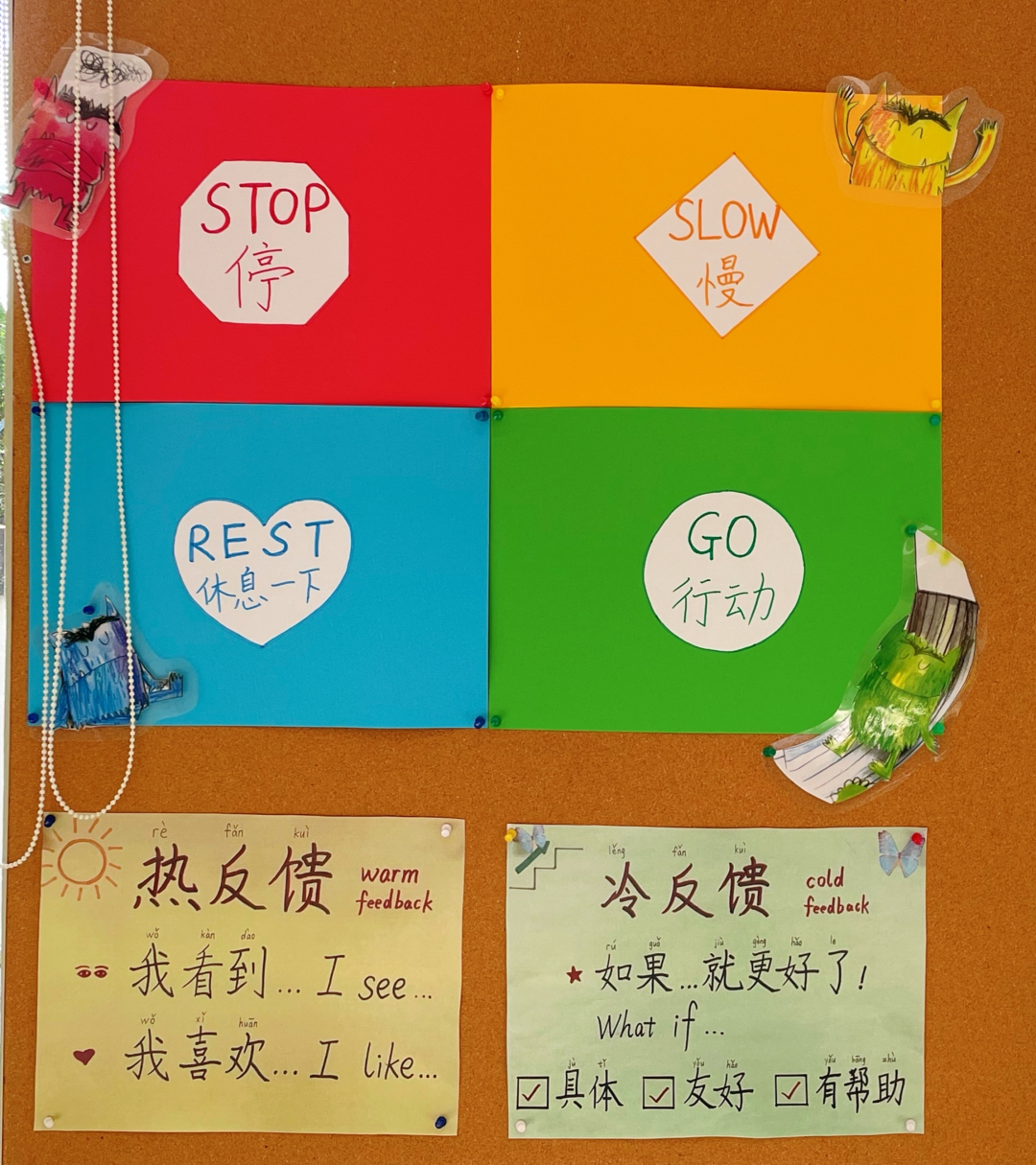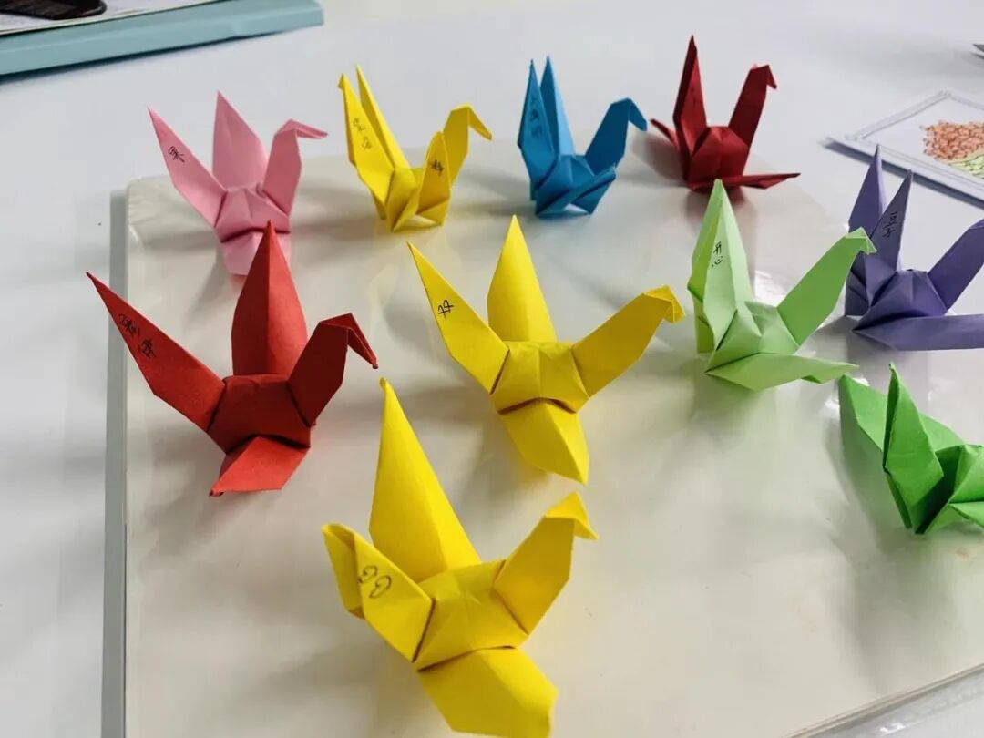 晨会的时候,我们一起读了《遇到你,真好》,老师对孩子们说:“遇到小土豆们,真好!你们每天陪伴着老师,让我们的教室充满欢声笑语。”每一份相遇都弥足珍贵,值得好好感恩,高静老师和晨晨老师悄悄给每个小土豆,都准备了一只亲手叠的千纸鹤,她们把孩子的名字写在了千纸鹤的翅膀上,祝愿小土豆的翅膀越来越强壮。