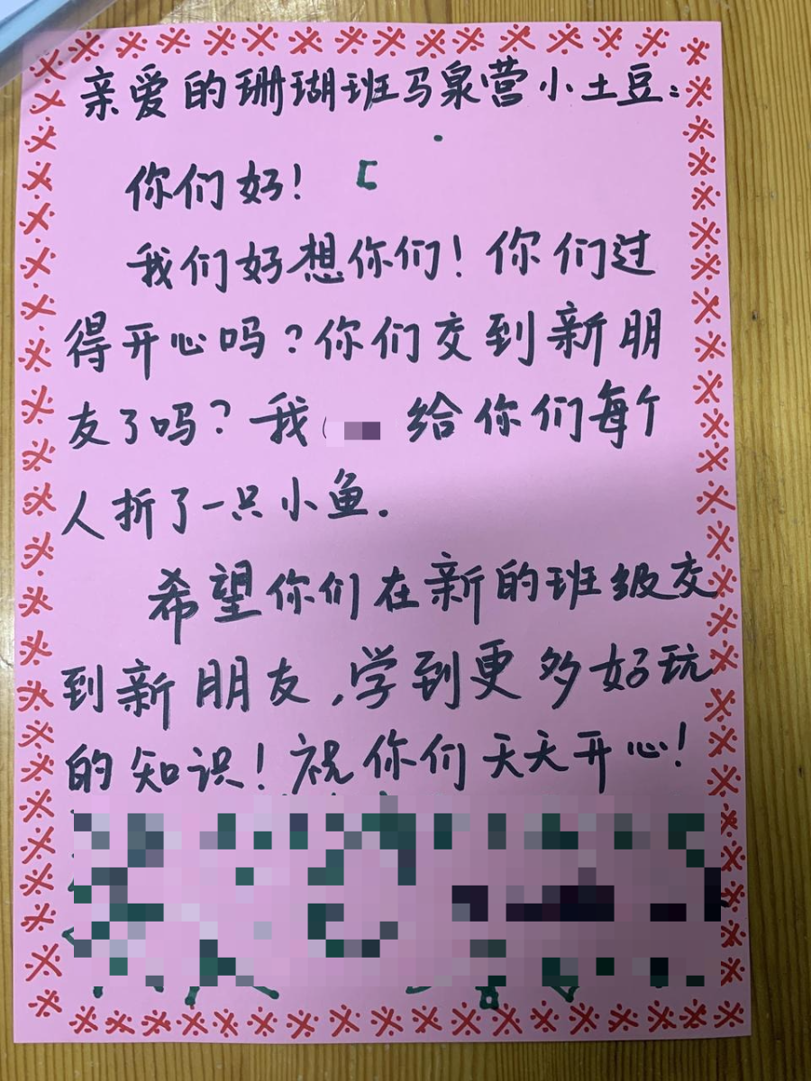 看着小土豆们内心中抒发出的真挚情感,老师们都为孩子们这份至真的感情和联结,还有那份纯纯的思念无比感动。他们确实需要一个途径把这些感受和情绪表达出来,无论是画画,折纸,还是写信与诉说,都是他们内心最真实的展现。