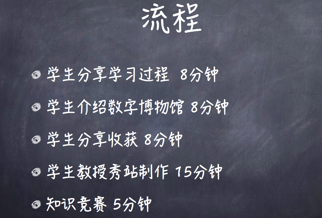 网站终于快完成了,接下来,就是展示阶段了。孩子们和老师共同决定,作为项目成果展示(SLC)的一部分,将在线上举办一个小小的网站发布会,同时,正式上线“数字博物馆”网站。从流程设计、邀请函制作、到内容准备、各个部分PPT的撰写,到最后发布会的现场执行,孩子们又一次成为学习的主人。在发布会现场,老师们除了做一些串场支持外,大部分时间都退居幕后,各部分的屏幕分享、主持、发言都由孩子们独立完成,每一个孩子都在现场分享了自己的学习经历和收获。看看孩子们自主设计的发布会流程,1个小时的发布会,被孩子们安排的井井有条。在这场项目的“庆祝收官”活动中,每个板块都有串场主持人,每个人都有发言的内容,每个人都感受到了自己的成长,并为之收获了满满的成就感。