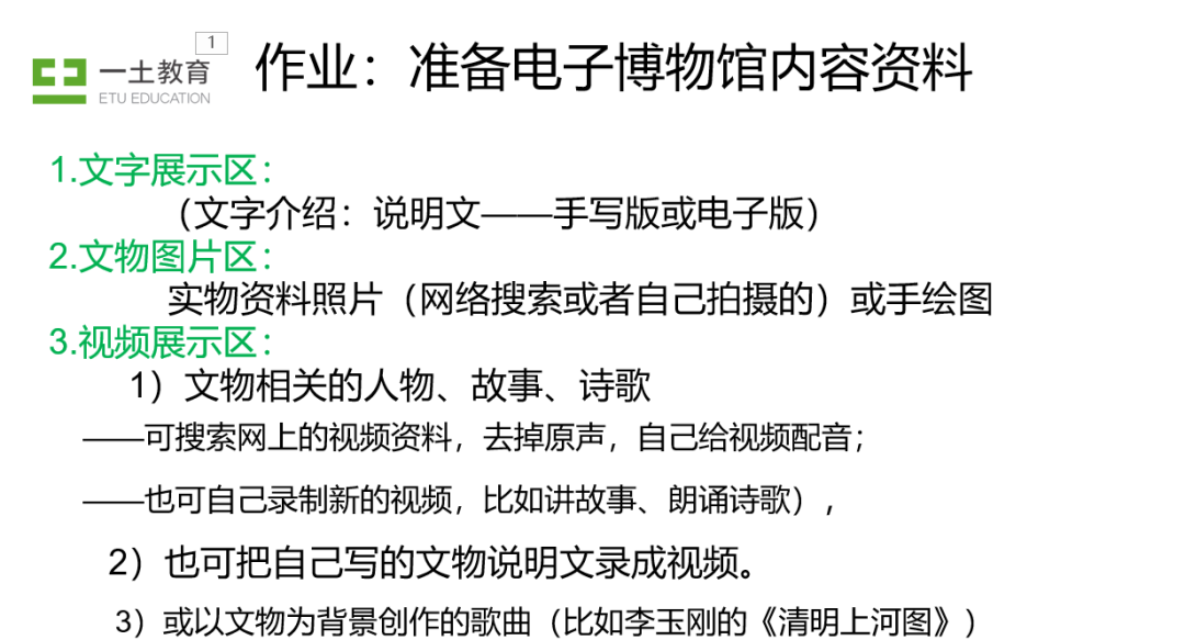 自己查询网页上的信息了解更多文物的信息,并提交“电子博物馆资料包”