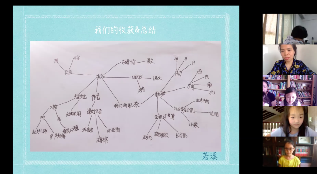 在分组工作坊里,孩子们分工协作,有主讲老师、有助教、还有学生(都是我们这些家长与老师,和外部嘉宾们),孩子们还为工作坊的“学员”们设计了学习目标,小老师带“大白”,老师很尽责,学员很努力,合作棒棒的!围绕我们的文物探索,孩子们给爸爸妈妈老师们出题,现场在Zoom的聊天页面上答题。问答题、开放题,一一俱全。有一些问题简直是现场难倒了大人们,看来,真的需要和孩子一起,回去“补课”了!
